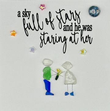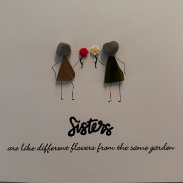 These framed pieces can be personalized to make a gift extra special. Each stone or seagrass is different in shape. Each piece ordered will look similar to what is displayed.