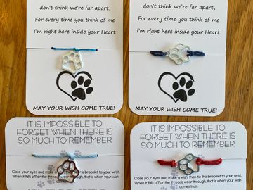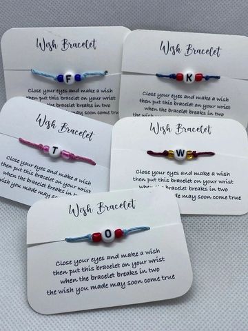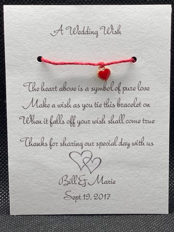 We can make custom cards to hand out to special occasion! You can choose colour of cord and we will find the perfect charm to go on your wish bracelets. Discounts for bulk orders .... let's chat.